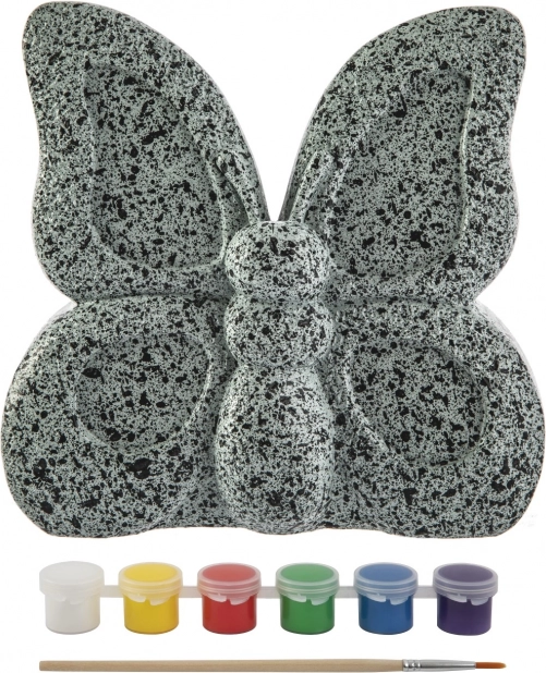 Dieses kreative Set zum Bemalen eines Steins in Schmetterlingsform bietet Kindern stundenlangen kreativen Spaß. Mit den beiliegenden 6 Farben und dem Pinsel können sie ihre eigene, originelle Dekoration gestalten, die Feinmotorik trainieren und Farben nach ihrer Fantasie kombinieren.