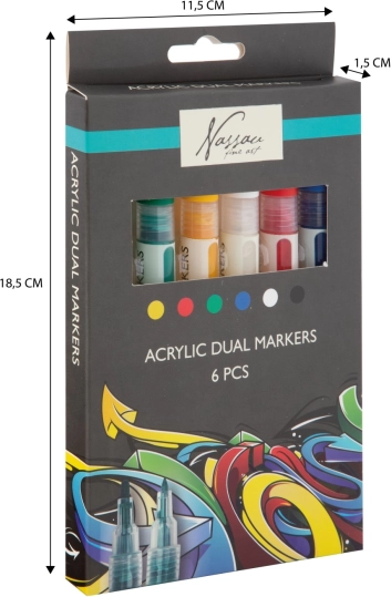 Dieses praktische Set aus Acryl-Dual-Markern bietet leuchtende, deckende Farbtöne und den Komfort von zwei Spitzen in jedem Stift. Damit gestalten Sie Beschriftungen, Illustrationen, Dekorationen und DIY-Projekte – vom Malen auf Papier und Karton bis zum Verzieren von Steinen, Holz oder Schuhen.