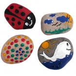 Steine, Papier, Holz oder Wohn-Deko – die Acrylfarbe deckt und leuchtet auch auf dunkleren Untergründen. Reinigen Sie die Oberfläche vor dem Auftragen und machen Sie eine Probe.