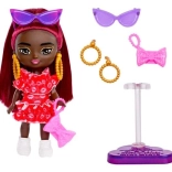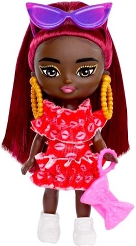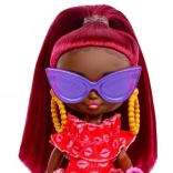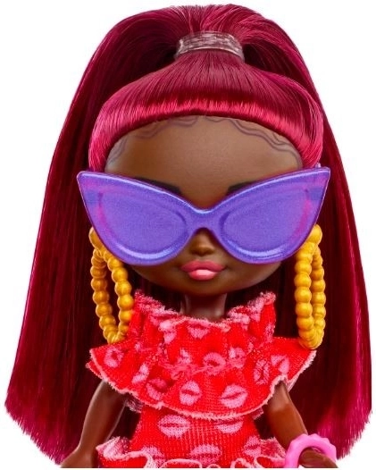Diese Mini-Puppe BARBIE aus der Kollektion Extra Mini Minis begeistert mit einem leuchtenden Outfit mit roten Rüschen, langen roten Haaren und auffälligen Accessoires wie lilafarbenen Sonnenbrillen, gelben Creolen und einer pinken Handtasche. Dank ihrer kompakten Größe ist sie perfekt für unterwegs und fürs Kinderzimmer.