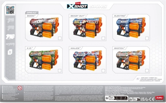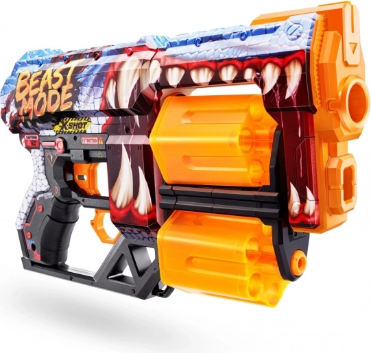 Mach dich bereit für adrenalingeladene Duelle mit dem Blaster X-SHOT SKINS DREAD im auffälligen Beast-Mode-Skin. Zwei unabhängige, rotierende Trommeln ermöglichen insgesamt 12 schnelle Schüsse – ist eine leer, genügt ein Umschalten, und die Action geht ohne Unterbrechung weiter. Das ergonomische Design und die leichte Bauweise sorgen für angenehmen Halt auch bei längerem Spielen.