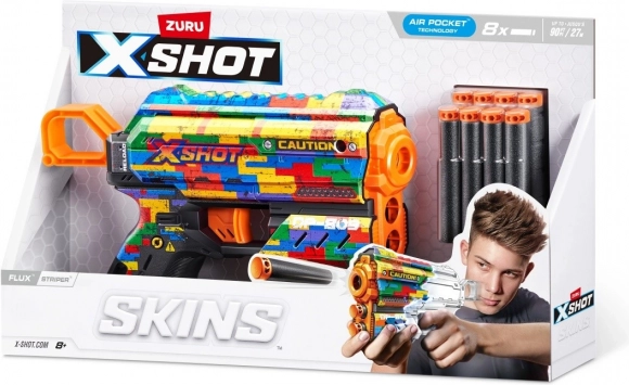 Personalisiere dein Arsenal wie in Videospielen! X-Shot Skins Flux lässt dich den Stil wählen, der zu dir passt – dieselbe Zuverlässigkeit, aber ein anderer Look. Die Variante Striper überzeugt mit einem bunten, verspielten Design, mit dem du auf dem Schlachtfeld sofort auffällst.