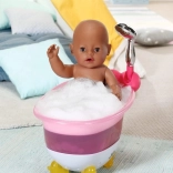 Die Puppe ist auch für Wasserspaß in der Badewanne bereit. Kinder können Alltagsroutinen nachahmen und ihr eigenes Baderitual gestalten.