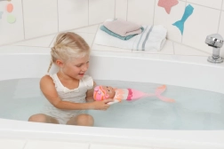 Die Puppe schwimmt auf der Wasseroberfläche, hat eine wunderschön gestaltete Flosse mit Schuppen und eine fröhliche Farbgebung, die auf den ersten Blick begeistert. Sie regt Kreativität und Rollenspiele an und fördert die Feinmotorik. Das ideale Geschenk für Jungen und Mädchen ab 1 Jahr.