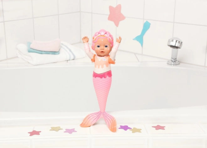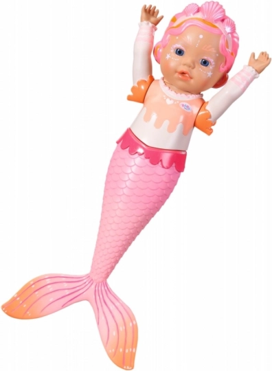 Entdecken Sie die zauberhafte Welt der Meeresgeschichten mit der Puppe BABY BORN My First Mermaid. Sie ist leicht, angenehm für kleine Kinderhände geformt und aus hochwertigen Materialien gefertigt, die sich bestens für Wasserspiele eignen. In der Badewanne wie auch außerhalb wird sie zur beliebten Begleiterin für kleine Fans von Meeresmärchen.