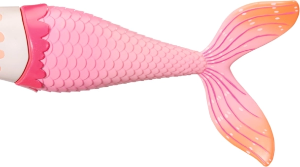 Die rosa-orangefarbene Flosse mit Schuppen und die zarten Verzierungen ziehen Kinder auf den ersten Blick an und fördern die Fantasie.