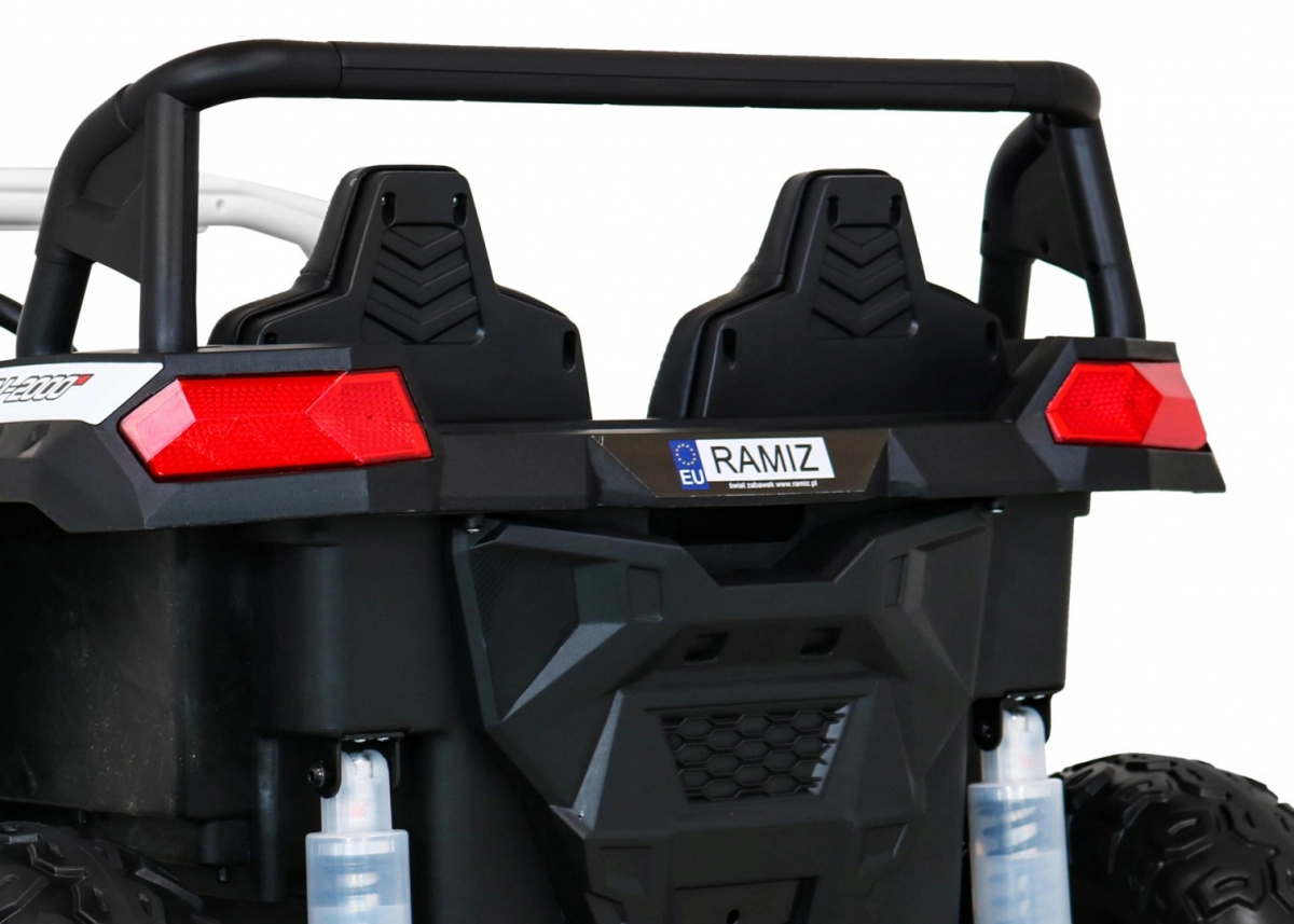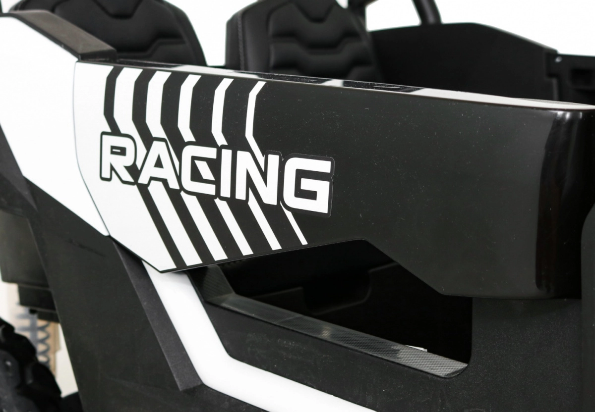 Das robuste und stabile Buggy ATV Racing ist für Abenteuer gebaut. Dank 4×4-Antrieb, großen EVA-Rädern und hinteren Stoßdämpfern meistert es Unebenheiten und leichtes Gelände. Kinder werden die realistischen öffnenden Türen, die LED-Lichter und den sportlichen Look lieben. Eltern haben alles im Griff über die 2,4-GHz-Fernbedienung mit drei Geschwindigkeiten und Sicherheitstaste Stopp.