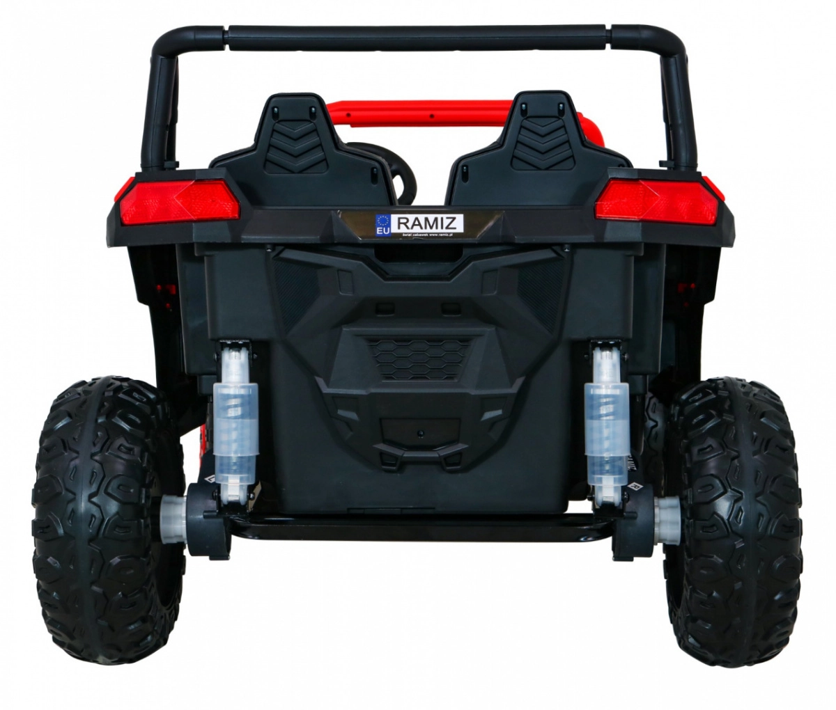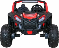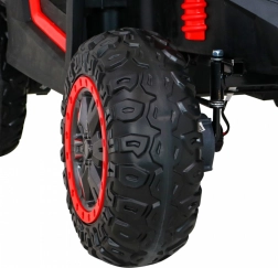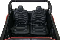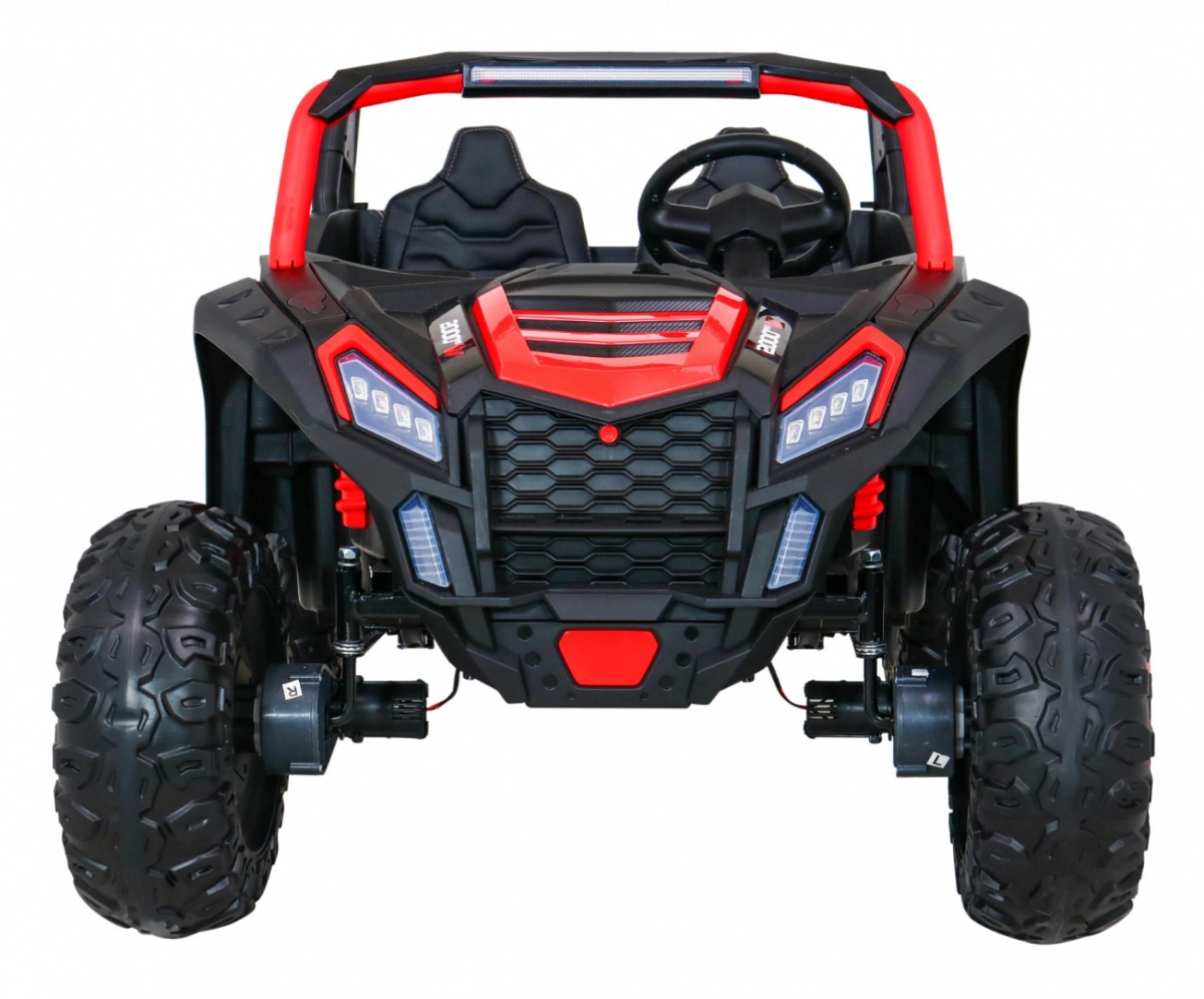 Der Offroad-Buggy für zwei kleine Fahrer verbindet hohe Leistung, Komfort und Sicherheit. Vier 200-W-Motoren sorgen für sicheren Allradantrieb, das sanfte Anfahren schützt Kinder vor Ruckeln, und doppelte hintere Stoßdämpfer erhöhen den Komfort auf Unebenheiten. Große EVA-Schaumräder 35×15 cm laufen leise und dämpfen gut, während LED-Lichter vorne und hinten die Sichtbarkeit verbessern.