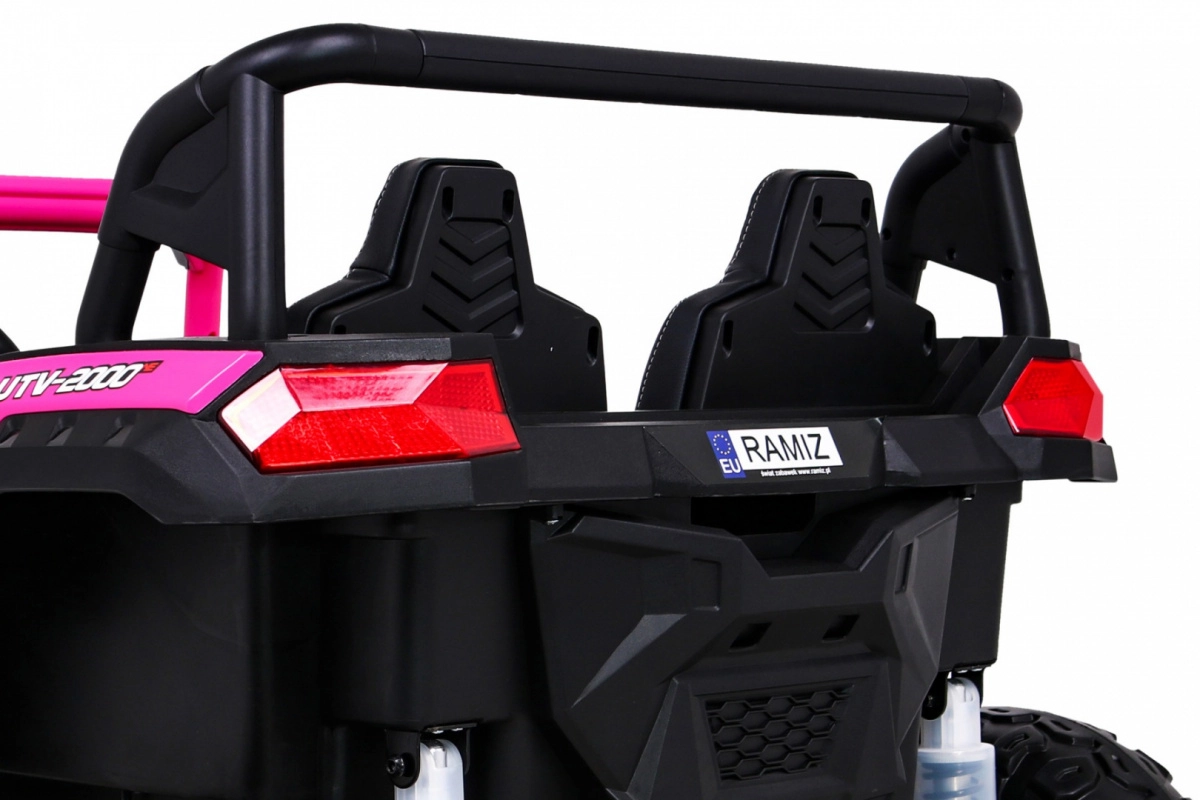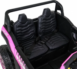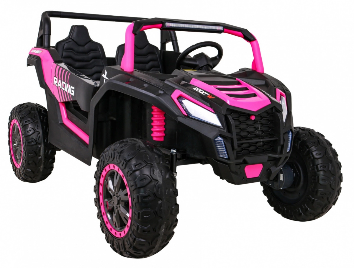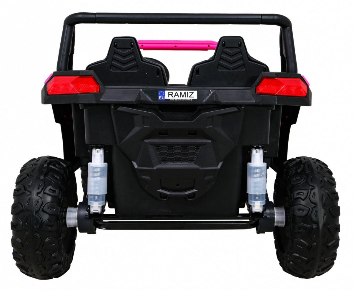 Dieses geländegängige Elektro-Buggy ist für Abenteuer zu zweit gemacht. Dank Allradantrieb 4x4 und großen EVA-Rädern mit tiefem Profil meistert es unebenes Gelände und bietet eine ruhige Fahrt. Der belüftete Sitz aus Ökoleder mit 3-stufiger Verstellung, Sicherheitsgurte und sanfter Anfahrtsmodus garantieren Komfort und Sicherheit.