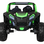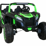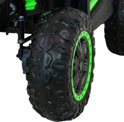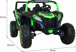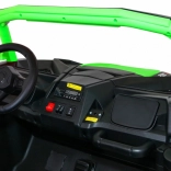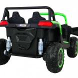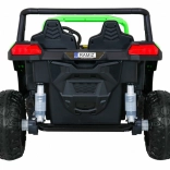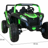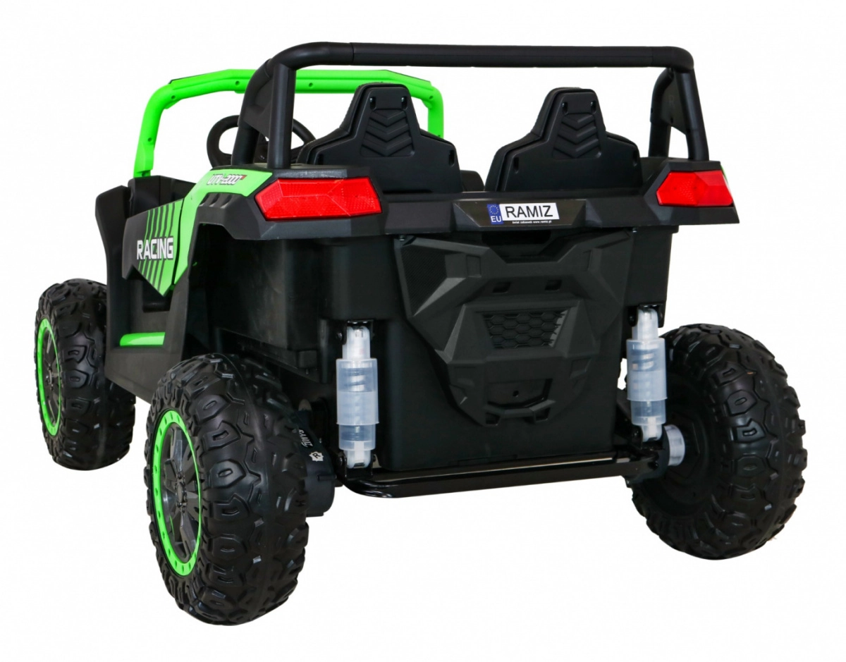 Dieses robuste elektrische Buggy ist ideal für Geschwister oder Freunde. Zwei bequeme Sitze aus perforiertem Eko-Leder, dreistufige Sitzverschiebung und Sicherheitsgurte sorgen für Komfort und Sicherheit. Dank der gummierten EVA-Räder 35×15 cm, hinteren Stoßdämpfer und 23 cm Bodenfreiheit genießen Kinder eine ruhige Fahrt auch abseits befestigter Wege.
