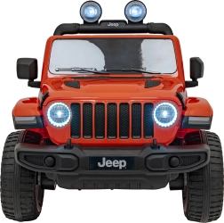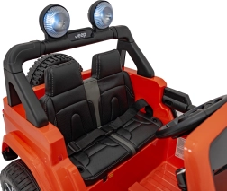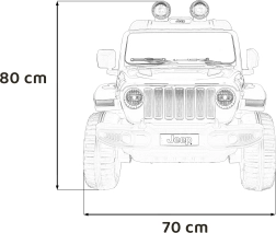 LED‑Scheinwerfer vorne und am Rahmen, große EVA‑Geländeräder und JEEP‑Details verleihen dem Auto authentischen Offroad‑Stil und gute Sichtbarkeit.