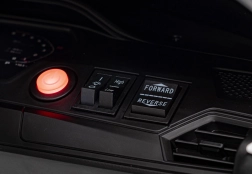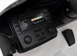 Das integrierte Audio-Panel bietet USB, Bluetooth, AUX, MP3-Wiedergabe sowie vorinstallierte Melodien. Am Lenkrad befindet sich eine Hupe. Den Akkustand prüfen Sie bequem über den Ladeindikator, gestartet wird über eine beleuchtete Taste.