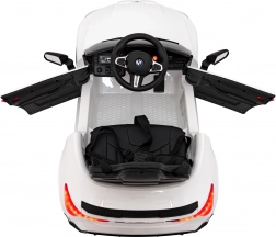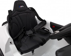 Kleine Fahrer genießen großen Spaß im detailreichen Auto mit lizenzierter Optik des BMW M4. Ein realistisches Fahrerlebnis bieten vordere und hintere LED-Leuchten, öffnende Türen, weiche EVA-Räder und der sanfte Soft-Start. Für Sicherheit sorgen der Sicherheitsgurt und die volle Kontrolle der Eltern über die 2,4-GHz-Fernbedienung mit STOP-Taste.