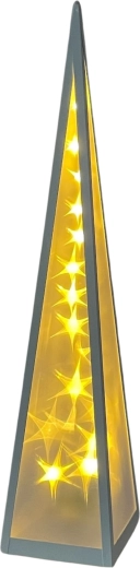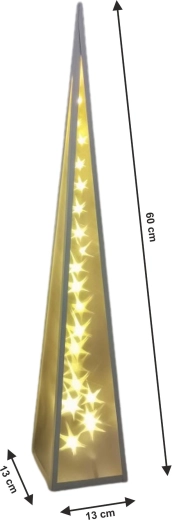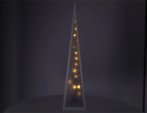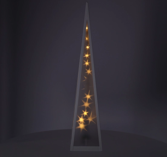 Plastpyramide mit weißem Metallrahmen, gefüllt mit Sternen, die sich in der Mitte der Pyramide bewegen ✨
