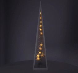 Plastpyramide mit weißem Metallrahmen, ausgefüllt mit Sternen, die sich in der Mitte der Pyramide bewegen ✨