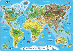 Illustrierte Motive von Tieren, Sehenswürdigkeiten und Naturbesonderheiten fördern geografisches Wissen auf spielerische Weise. Dank 160 Teilen und dem großen Format ist das Puzzeln übersichtlich und motivierend.
