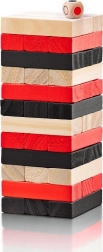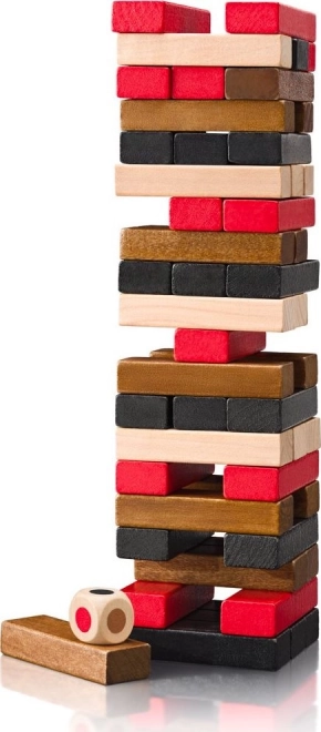 Bauen, ziehen, balancieren. Bunte Holzklötze und ein Würfel sorgen für neue Herausforderungen und machen jede Runde zur spannenden Show.