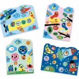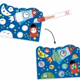 Sobald das Wasser trocknet, kehren die Bilder in ihren ursprünglichen Zustand zurück und das Spiel kann von Neuem beginnen. Zum Set gehört auch ein Tuch und eine praktische Tasche mit Reißverschluss, um alles bequem zu verstauen und unterwegs in Ordnung zu halten.