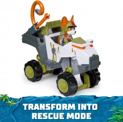 Betretet mit Tracker und seinem Dschungel-Fahrzeug die Welt der Abenteuer. Einfach Schwanz, Ohren und den Abschuss-Port anheben, das Projektil einsetzen und das PAW-Patrol-Abzeichen drücken, damit sich das Fahrzeug anhebt und die Transformation in den Rettungsmodus abschließt. Kinder können so Lieblingsszenen aus der Serie nachspielen und gleichzeitig Fantasie sowie Feinmotorik fördern.