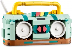 Reist in die Vergangenheit mit einem kreativen Bauset, das Retro-Stil und modernen Spielspaß vereint. Aus einem Set baut ihr einen markanten Rollschuh mit rosa Rädern, gelben „Schnürsenkeln“ und der Möglichkeit, die Ferse mit bunten Teilen zu verzieren – und verwandelt ihn anschließend in ein kompaktes Skateboard oder eine stylische Boombox.