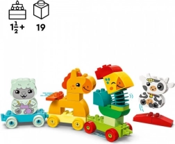 Der LEGO DUPLO Tierzug begeistert alle kleinen Fans von Tieren und Fahrzeugen. Kinder bauen Hahn, Pferd, Schaf und Kuh, setzen sie in die farblich abgestimmten Waggons und starten zu einer abenteuerlichen Fahrt. Dank der großen Steine lässt sich das Set leicht zusammenbauen und fördert das Lernen durch Spiel.