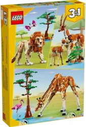 LEGO Creator 3-in-1 Wilde Tiere auf Safari eröffnet Kindern die bunte Welt der afrikanischen Natur. Aus einem Set von Teilen entsteht eine majestätische Giraffe mit langem Hals und beweglichen Gelenken, begleitet von einem Flamingo und einem Baum. Anschließend lässt sich das Modell leicht in zwei Antilopen (Mama und Jungtier) oder in einen beeindruckenden Löwen umbauen – stets mit passenden Elementen für fantasievolles Rollenspiel.