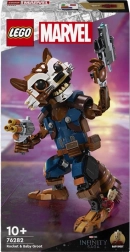 Die authentische Rocket-Figur fängt seinen rebellischen Ausdruck und seine Liebe zu Waffen ein – in den Händen hält er einen Feder-Shooter und einen Blaster. Dank der Gelenke in allen Hauptbereichen (außer an den Ellbogen) lässt sie sich leicht in dynamische Posen bringen, ergänzt durch den treuen Begleiter Baby Groot, der an der Schulter befestigt werden kann.