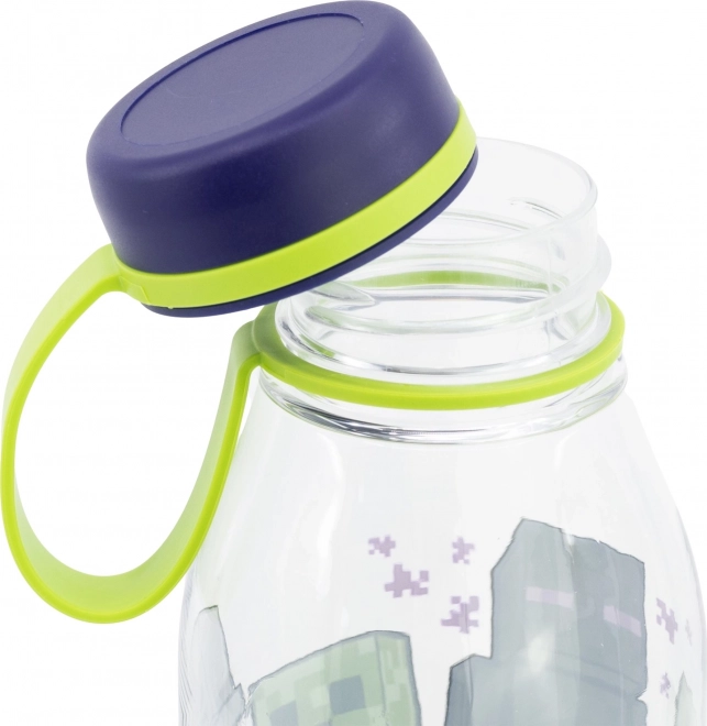 Bleibe im MINECRAFT-Stil gut hydriert. Die robuste Tritan-Flasche ist leicht und dennoch widerstandsfähig und dichtet dank Silikonverschluss zuverlässig ab. Die praktische Schlaufe erleichtert das Tragen und Kinder können sie mühelos öffnen und schließen.