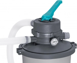 Dank der Kapazität von 3596 l/h ist die Pumpe ideal für Pools mit einem Volumen von 1.100 bis 18.100 Litern. Für den Betrieb wird eine Sandfüllung (Quarzsand #20, Körnung 0,45–0,85 mm, ca. 8,5 kg) oder hocheffiziente Polysphere™-Filterbälle mit einem Gewicht von ca. 240 g benötigt.