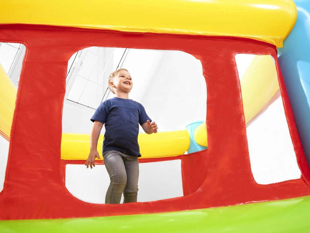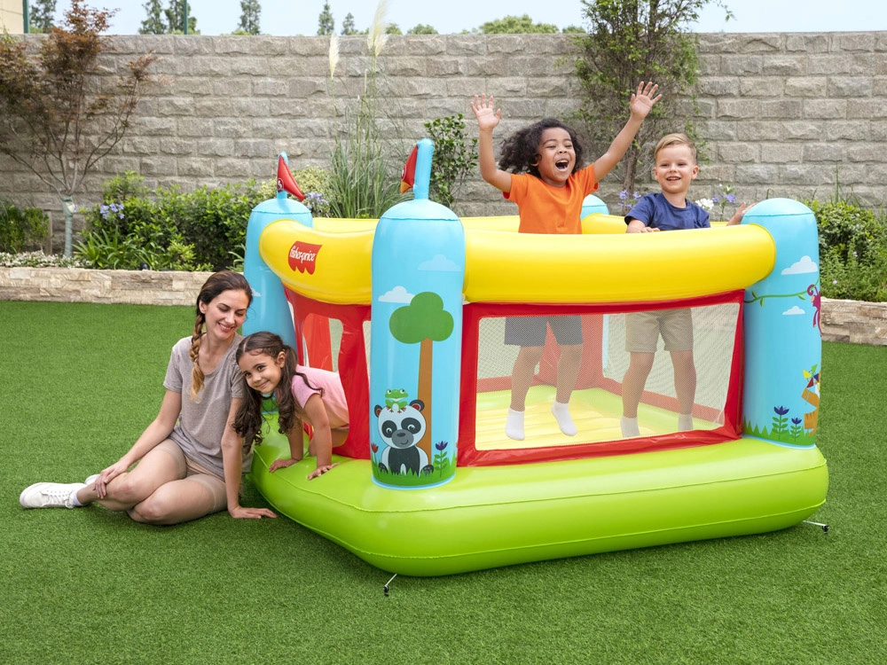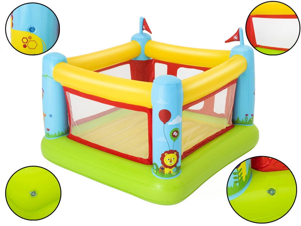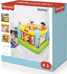 Die aufblasbare Hüpfburg Bestway FISHER‑PRICE schafft einen sicheren und komfortablen Bereich zum Hüpfen, Toben und freien Spiel. Transparente Netzpaneele sorgen für gute Sicht und Luftstrom, während weiche Luftwände und der Boden Stöße dämpfen. Dank der kompakten Maße passt sie in die meisten Kinderzimmer sowie auf Terrasse oder in den Garten.