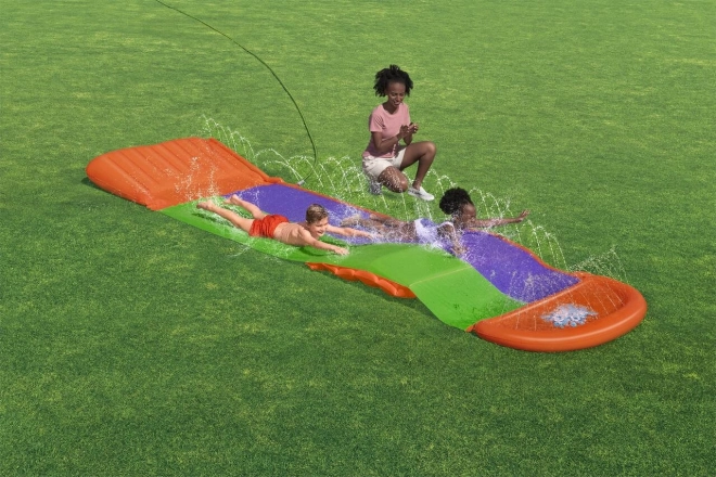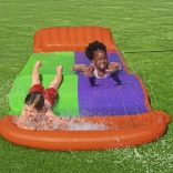 Die SplashCoaster-Rutsche von Bestway bringt Spaß in Ihren Garten! Dank der zweispurigen Rutsche mit einer Länge von 4,88 Metern ist sie ideal für Rennen und Gruppenspaß. Wasserfontänen sorgen für ein reibungsloses und schnelles Gleiten.