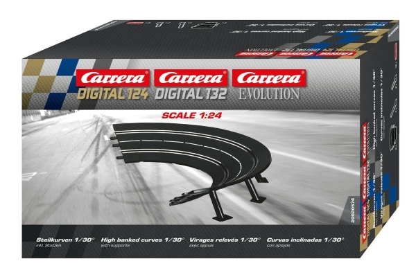 Diese überhöhte 1/30°-Kurve bringt realistischere Durchfahrten und mehr Fahrspaß in Ihre Rennen. Dank der Kompatibilität mit EVOLUTION, DIGITAL 132 und DIGITAL 124 erweitern Sie Ihre Strecke mühelos um einen technischen Abschnitt, der die Fahrbarkeit der Modelle fordert und die Laufruhe verbessert.