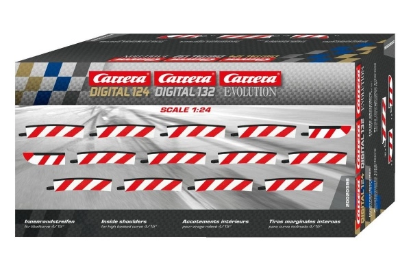 Erweitern Sie Ihre Strecke um innere Randstreifen für die überhöhte Kurve 4/15° und genießen Sie einen flüssigeren Kurvenverlauf. Die Teile sind kompatibel mit den Systemen CARRERA EVOLUTION, DIGITAL 132 und DIGITAL 124 und passen zur überhöhten Kurve 4/15° (20579). Dank des R4-Radius erhalten Sie eine optimale Geometrie für schnelle und stabile Fahrten.