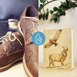 Geeignet zum Dekorieren von Holzobjekten, Lederaccessoires oder zur Personalisierung von Geschenken. Die stabile Leistung und die Kompatibilität mit dem Multipro-System ermöglichen Ihnen ein schnelles Umschalten zwischen 3D-Zeichnen, Schneiden, Löten und Brennen.
