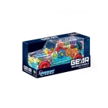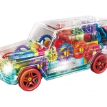 Dank klarem Kunststoff sehen Kinder genau, wie die Zahnräder ineinandergreifen und was das Auto antreibt – ideal für erste Schritte in die Mechanik.