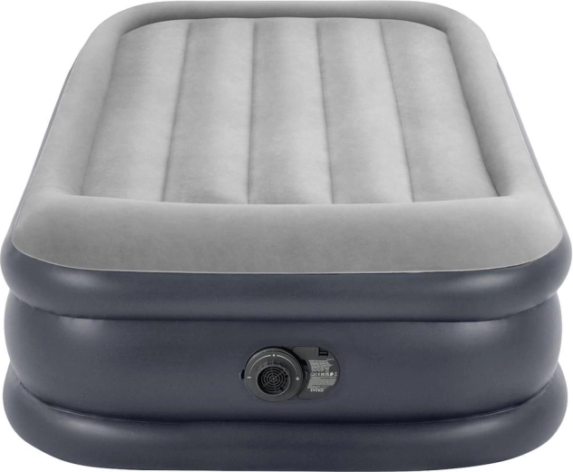 Suchen Sie eine bequeme und stabile Gästelösung für Zuhause, Hütte oder Reisen? Das INTEX aufblasbare Einzelbett mit 42 cm Höhe bietet Komfort wie ein klassisches Bett. Die Veloursoberfläche fühlt sich angenehm an und verhindert das Verrutschen des Bettlakens, während die integrierte Elektropumpe (220–240 V) für eine schnelle Schlafbereitschaft sorgt.