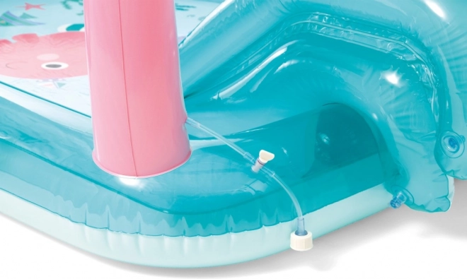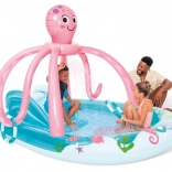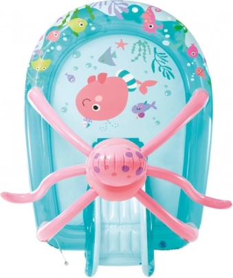 Das aufblasbare Wasserspielcenter Oktopus verwandelt Ihren Garten in ein kleines Meereskönigreich. Dank des integrierten Sprinklers mit Anschluss an den Gartenschlauch entsteht ein feiner Wassereffekt, den Kinder lieben, und die Rutsche ergänzt den Spaß mit sicherem Hineingleiten ins Becken. Die extra aufblasbare Bodenmatte erhöht den Komfort beim Sitzen und Spielen.