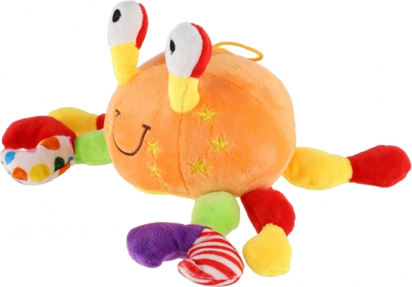 Diese farbenfrohe Plüschrassel in Krabbenform begeistert Babys auf den ersten Blick. Die leichte, gut greifbare Form und der angenehme Plüsch machen das Spielzeug zum idealen Begleiter für Bettchen, Kinderwagen und unterwegs. Sanfte Klangeffekte beim Schütteln fördern auf natürliche Weise das Hören sowie die Hand-Auge-Koordination.