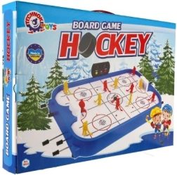 Im Lieferumfang enthalten sind Spielfeld, Spielstandsanzeige, 2 Pucks, 2 Torhüter, 2 Tore und 10 Feldspieler – auspacken und loslegen.