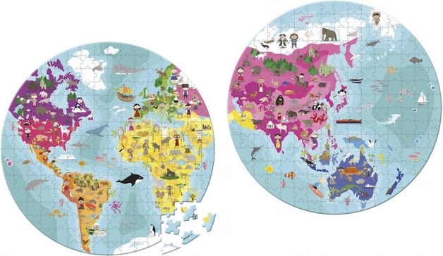 Entdecke die Welt mit Kindern dank des runden JANOD-Puzzles mit Globusmotiv. Dieses hochwertige Puzzle mit einem Durchmesser von 50 cm bietet 208 Teile, die östliche und westliche Hemisphäre mit Tierillustrationen zeigen. Ideal zum Lernen durch Spiel, zur Förderung von Geduld, Feinmotorik und räumlicher Vorstellungskraft – alles in einer praktischen Koffer-Verpackung.