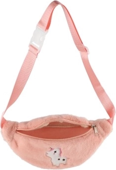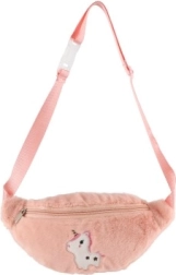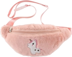 Ein Einhorn auf der Vorderseite verleiht der plüschigen Gürteltasche ein verspieltes und kindliches Aussehen.