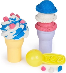 Kreieren und genießen Sie das lustige Spiel mit dem Kinetic Sand Eiscreme-Set, das Kindern ermöglicht, 'Eiscreme' aus speziellem Sand in fröhlichen Farben zu formen.
