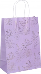 Praktische und stilvolle Geschenktasche in Größe S mit den Maßen 18,5 × 25 × 10 cm – ideal für kleinere Geschenke. Erhältlich in vier modernen Farben – Grau, Violett, Rosa und Blau. Eine ausgezeichnete Wahl für ganzjährigen Einsatz, robuste Ausführung und elegantes Erscheinungsbild.
