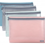 Mappe mit Reißverschluss, ideal zur Organisation von Dokumenten. Erhältlich in 4 Farbvarianten: Hellgrün, Grau, Rosa und Hellblau.
