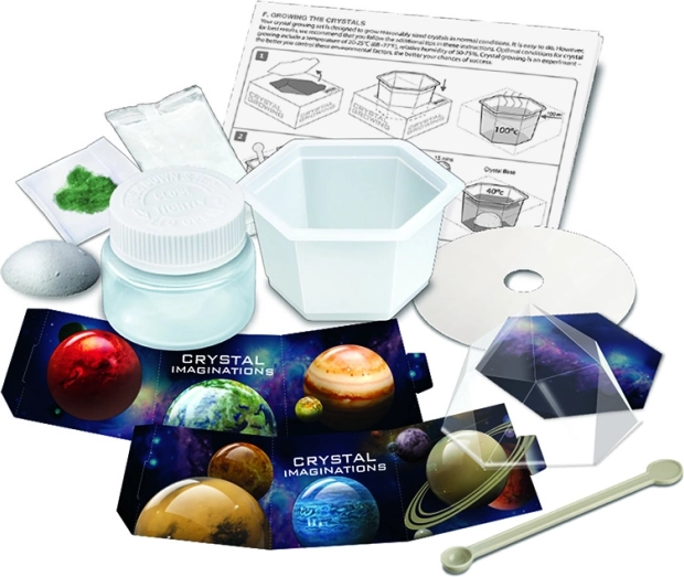 Nach Abschluss des Experiments können Sie den Kristall in einer transparenten Vitrine mit Raumfahrtmotiv ausstellen – so dient er auch als originelle Dekoration fürs Kinderzimmer. Das Set fördert Geduld, Beobachtungsgabe und Interesse an den Naturwissenschaften.