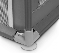 Für Eltern ist die Willow ein praktischer Helfer: Die Materialien lassen sich leicht reinigen, Montage und Demontage gelingen ohne Werkzeug, und zusammengeklappt benötigt sie nur minimalen Platz. Zwei seitliche Reißverschlüsse besitzen den Schieber auf der Außenseite, sodass der Zugang ausschließlich von Erwachsenen kontrolliert wird. Die Stabilität erhöhen Stahlrohre (Ø 2,5 cm), die Schaumstoffpolsterung der oberen Rohre und 4 Saugnäpfe in den Ecken für zuverlässige Haftung.