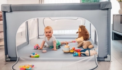 Die Netzwände gewährleisten eine kontinuierliche Luftzirkulation und bieten Kind und Eltern eine ausgezeichnete Sicht. Die weiche Struktur ist sanft bei den ersten Schritten, und das verspielte Bärenmotiv lädt zum Spielen ein.