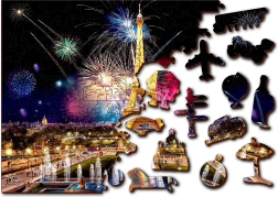 Das Puzzle ist beidseitig (2-in-1): Auf der einen Seite puzzeln Sie nach dem farbigen Motiv des nächtlichen Paris mit Feuerwerk, auf der anderen Seite nach einem wiederkehrenden Muster ausschließlich anhand der Formen. Glatte, splitterfreie Kanten garantiert die präzise Laserverarbeitung und die stabile HDF-Platte mit 3–4 mm Stärke. Im Set finden Sie außerdem eine separate Vorlage für ein bequemeres Puzzeln.