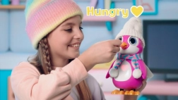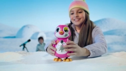 Sie können den Pinguin anziehen mit Wollmütze und Schal, ihn mit einem Fischkeks füttern (Achtung, nicht überfüttern!) und ihn knuddeln, indem Sie auf seinen Bauch oder Flügel tippen, damit er tanzt und singt. Dank leuchtender Farben, sanfter Formen und einer Größe von 20 cm liegt er auch kleinen Kindern gut in der Hand und fördert Fantasie und Fürsorgespiell.