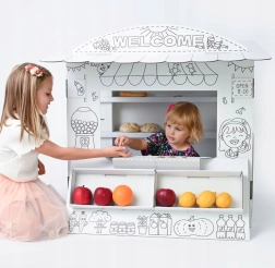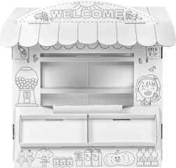Tauchen Sie Ihre Kinder in die Spielwelt mit diesem Kartonspielstand ein. Sein Design erinnert an einen kleinen Laden, in dem Kinder ihre sozialen Fähigkeiten und Kreativität entwickeln können: